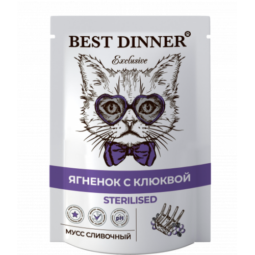 Best Dinner Exclusive Sterilized мусс для стерилизованных кошек ягнёнок/клюква 85г