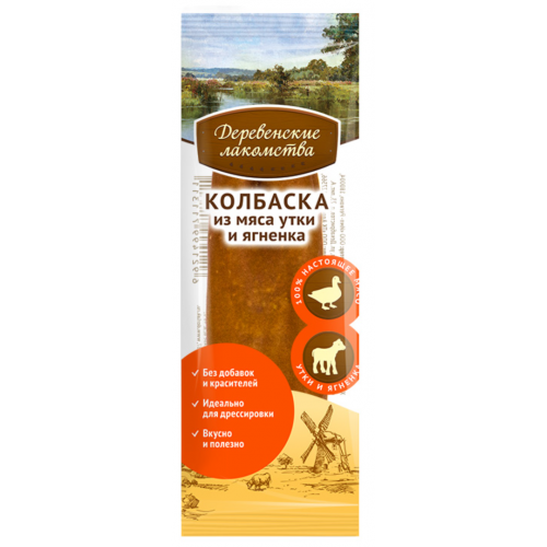 Деревенские лакомства для собак Колбаска из мяса утки и ягнёнка 8г