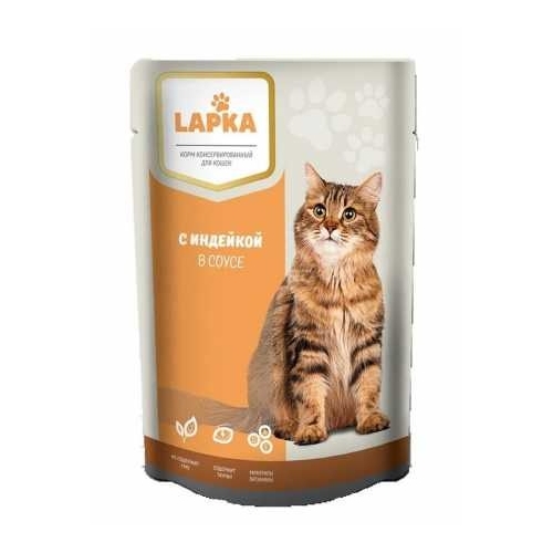 Влажный корм для кошек LAPKA с индейкой в соусе - полноценное сбалансированное питание для взрослых кошек.