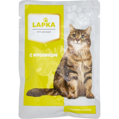 Корм для кошек Lapka с кроликом в соусе 85г – доступное и вкусное лакомство на каждый день для вашей домашней любимицы! Кусочки в нежном соусе, приготовленные без консервантов и ГМО, обладают великолепным ароматом крольчатины, который раззадорит аппетит кошки и заставит ее съесть все до последней крошки! Корм представляет из себя натуральный продукт для кошачьего рациона с высокой поедаемостью, при производстве которого используется мясо кролика, продукты растительного происхождения и растительные протеины, клетчатка, витамины, таурин и другие необходимые для любой кошки питательные вещества. Прекрасный вкус и высокая влажность способствует хорошему усвоению корма кошачьим организмом.
