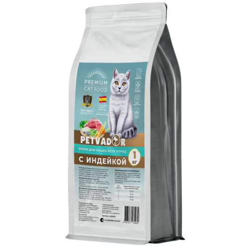PETVADOR PREMIUM сухой корм для кошек всех пород индейка 1кг