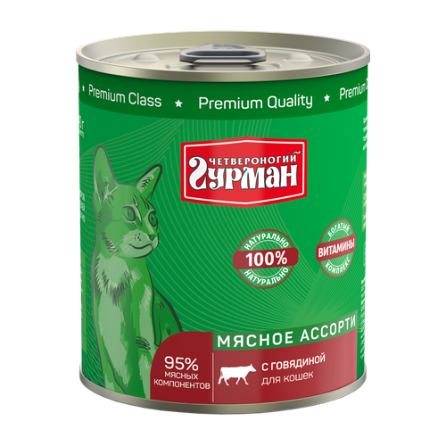 Четвероногий гурман Мясное ассорти консерва для кошек говядина 340г