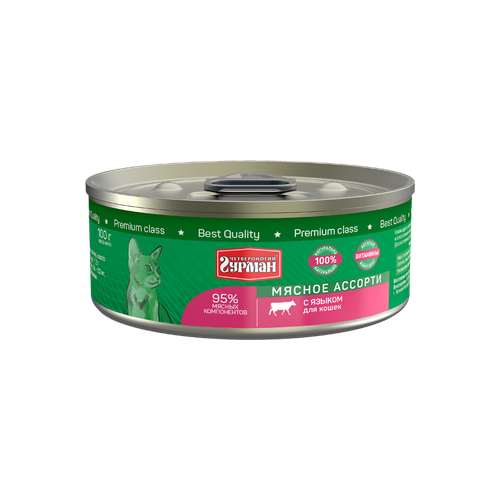 Четвероногий гурман Мясное ассорти консерва для кошек язык 100г
